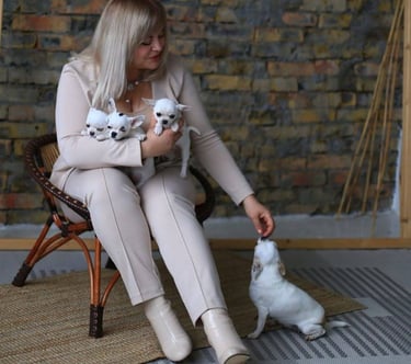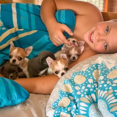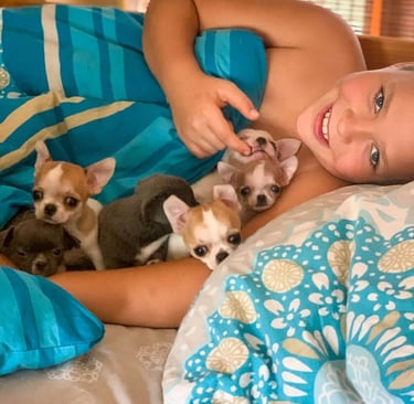 Todos nuestros cachorros se crían en nuestro hogar, como parte de nuestra familia, para garantizarles mucho cariño, atención y la mejor socialización e interacción posible. ¡Y, por supuesto, muchísimo amor! Nuestros cachorros reciben atención veterinaria adecuada, tienen todas sus vacunas al día y se les implanta un microchip para su identificación permanente antes de irse a su nuevo hogar. Nos esforzamos por criar cachorros que sean la incorporación perfecta a su familia.